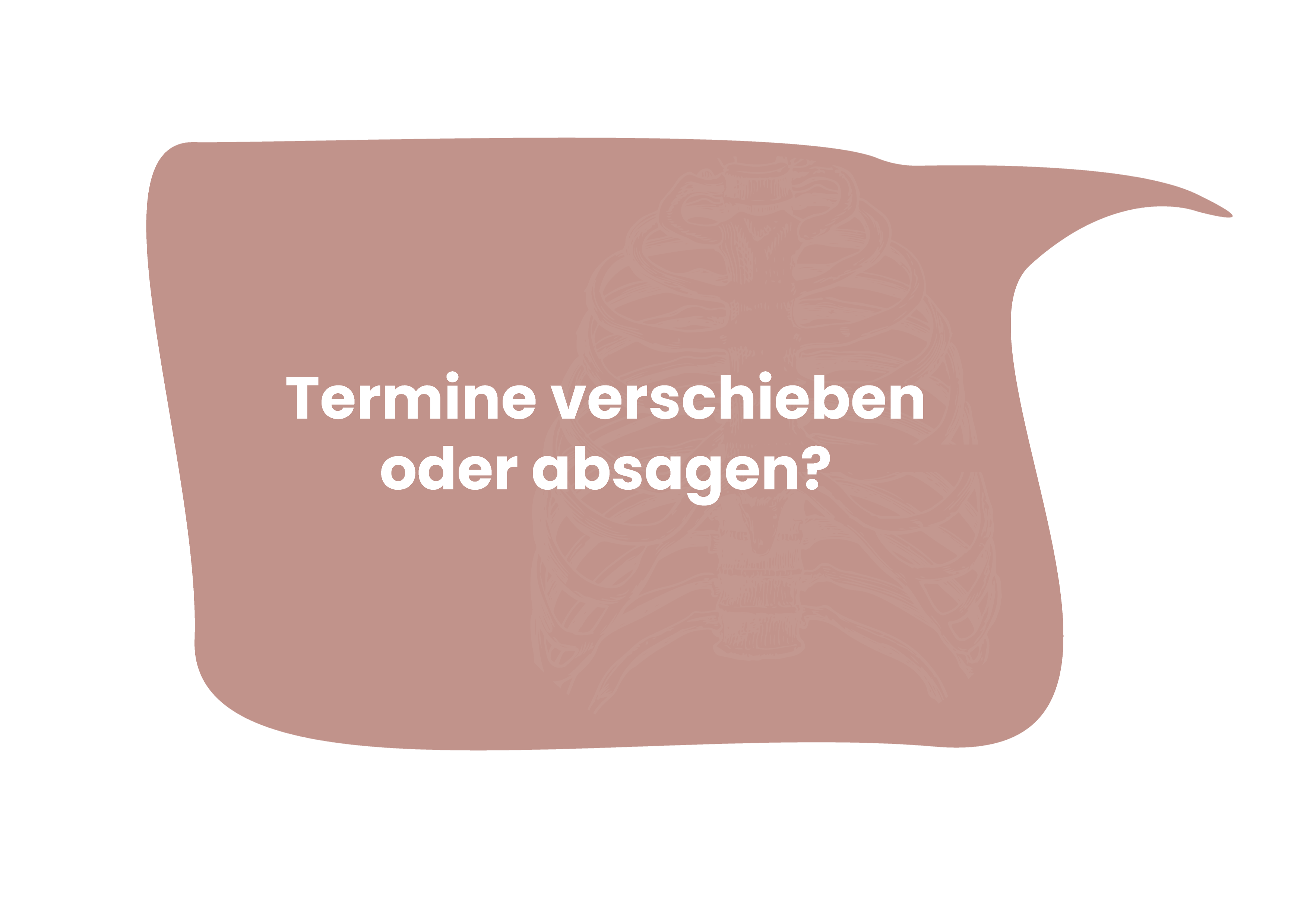 Falls Sie den Behandlungstermin in der Osteo-Dreiländereck nicht einhalten können, bitte setzen Sie mich darüber mindestens 24h vor der geplanten Behandlung in Kenntnis. Da ich diese Zeit fest für Sie eingeplant habe, muss ich unentschuldigte oder versäumte Termine leider in Rechnung setzen.